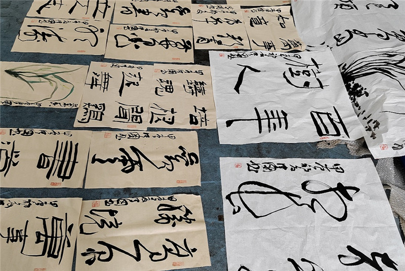 安排著名国画家宋大中、方胜松,工笔画家喻晓英,书法家瞿传国等,为康定市第三中学师生现场挥毫泼墨,经过大师们精心抒怀,共创作了10多幅国画、10多把扇面工笔画,40多幅书法作品,赠送给康定市第三中学。书画创作现场,师生们目不转睛围观壮阔画卷,认真听取大师讲解,不少同学还向大师现场请教并进行书画,从心灵上受到了书画艺术与国学文化的熏陶。